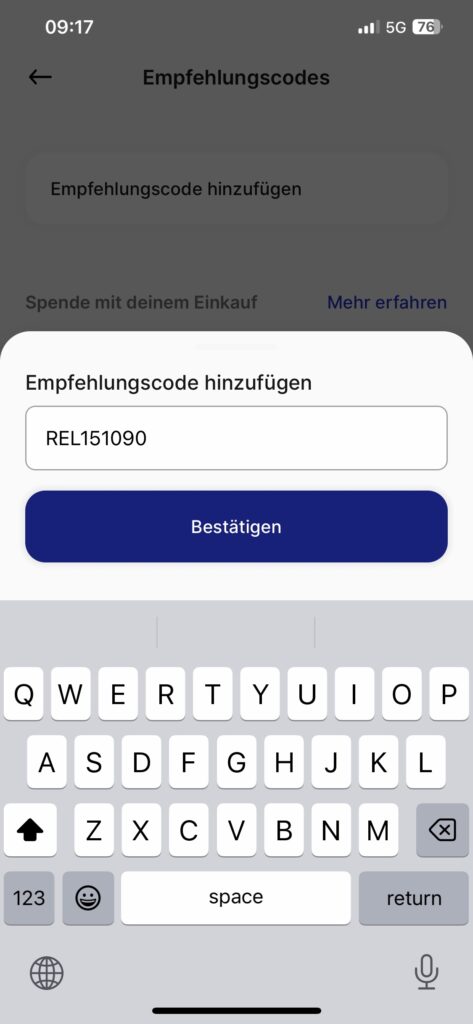 Klicken Sie auf „Empfehlungscode hinzufügen“.